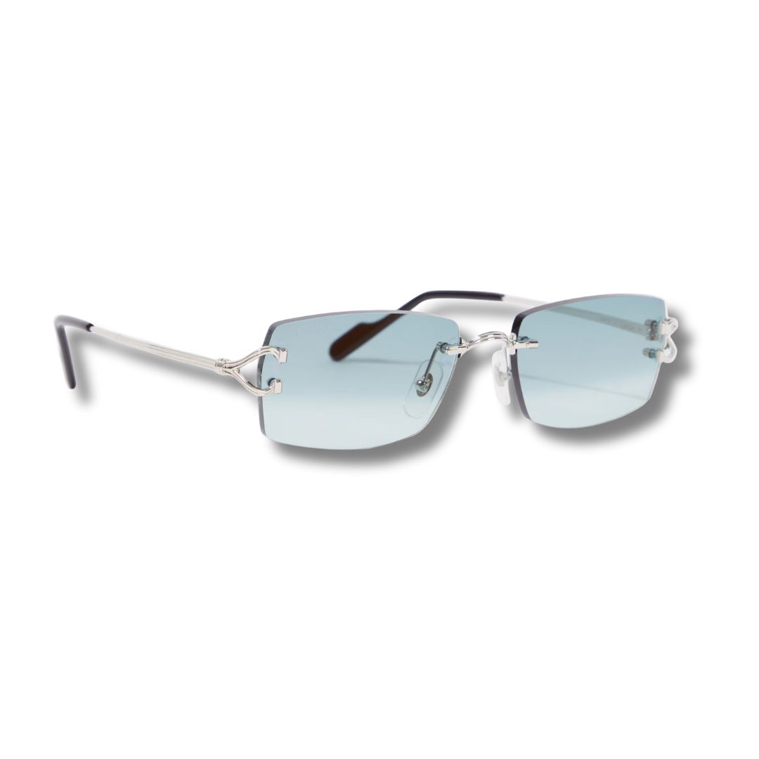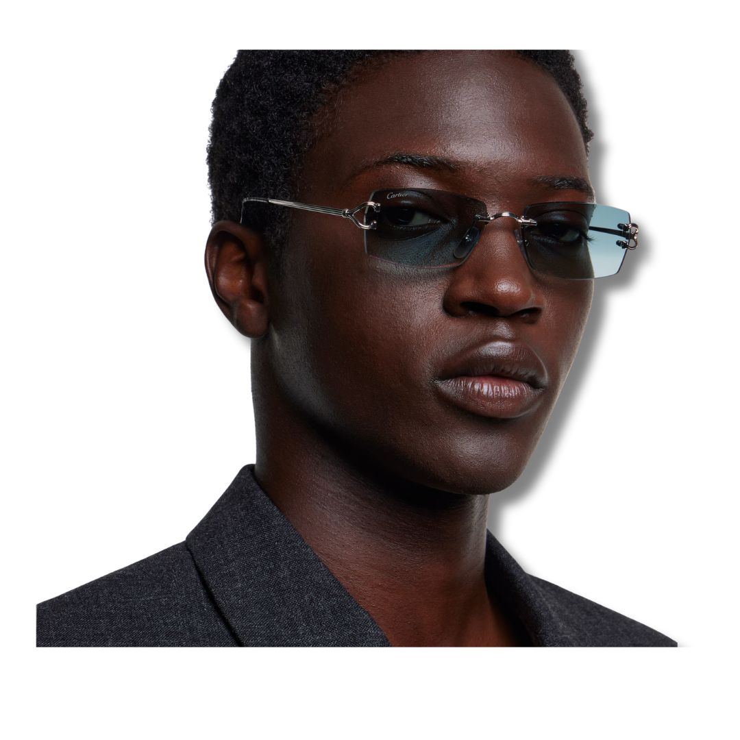Featuring sleek rectangular lenses and elegant silver hardware, these sunglasses are finished with the unmistakable Signature C de Cartier detail. The rimless construction enhances their lightweight feel while maintaining a sophisticated, modern silhouette.