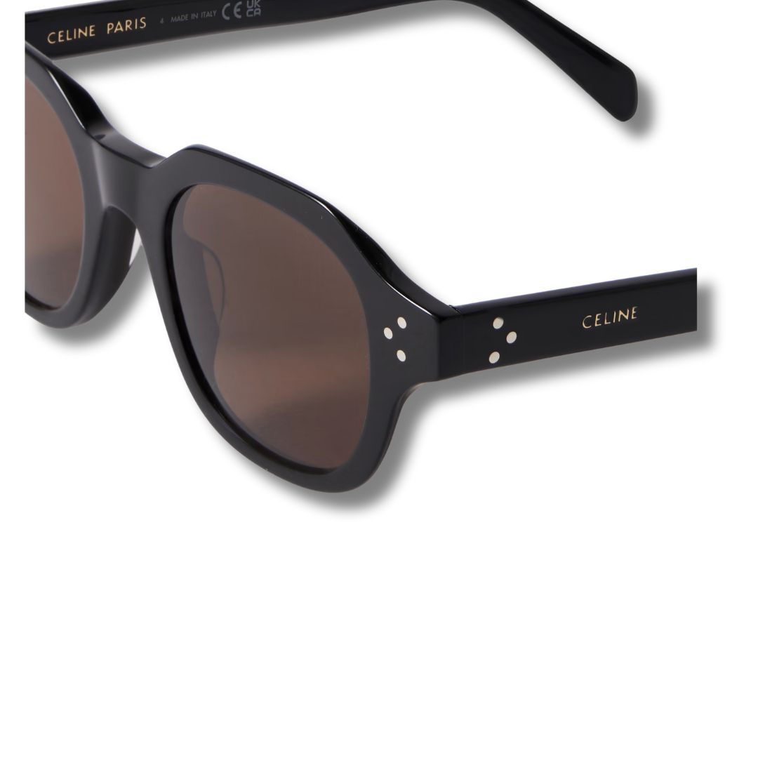 Expertly crafted from high-quality black acetate, these sunglasses feature smooth contours and a polished finish. The temples are detailed with Celine’s signature ‘3 Dots’, adding a subtle yet recognizable brand hallmark.