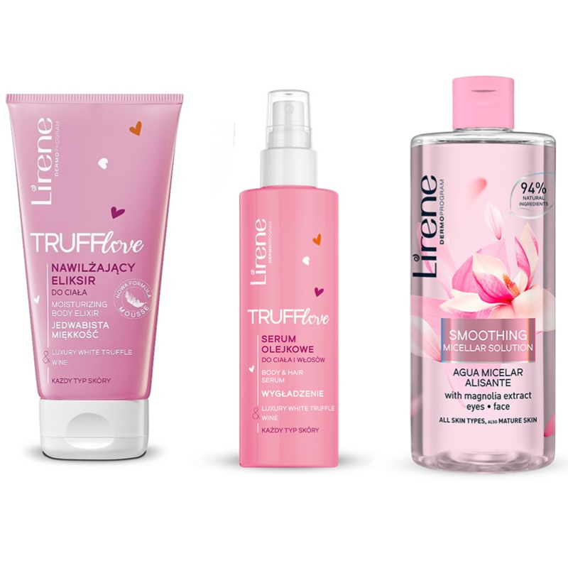Lirene Truff Love Body Set Valentine 2024 is the perfect indulgence for your skin this Valentine?s Day. This luxurious set includes a fragrant body lotion and shower gel, both enriched with nourishing ingredients to hydrate and soften your skin. The elegant, sweet scent of truffle adds a romantic touch, leaving your skin smelling delightful all day. Ideal for gifting or self-care, Lirene Truff Love Body Set provides a pampering experience that leaves your skin feeling smooth, moisturized, and beautifully scented. Celebrate love with this enchanting skincare set.