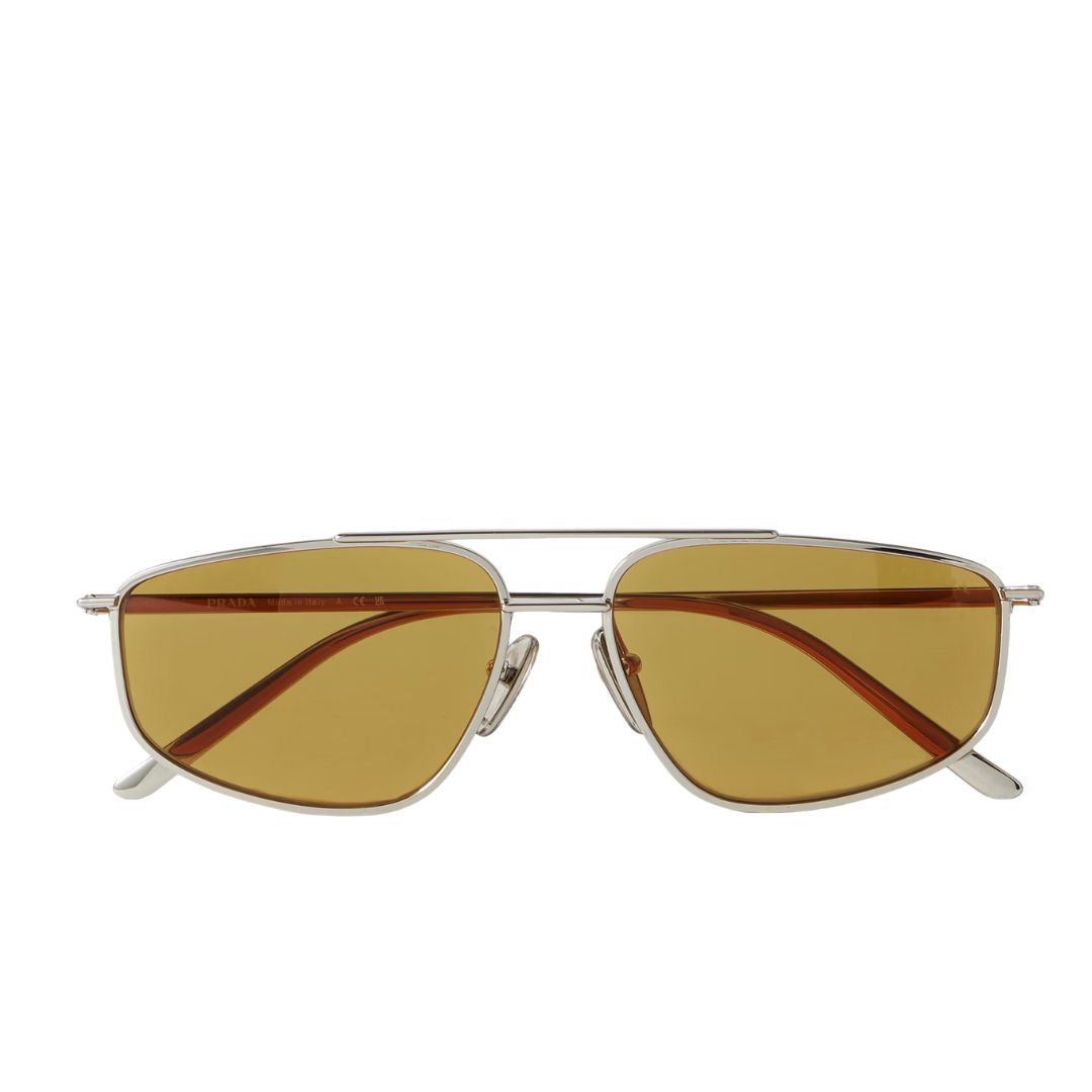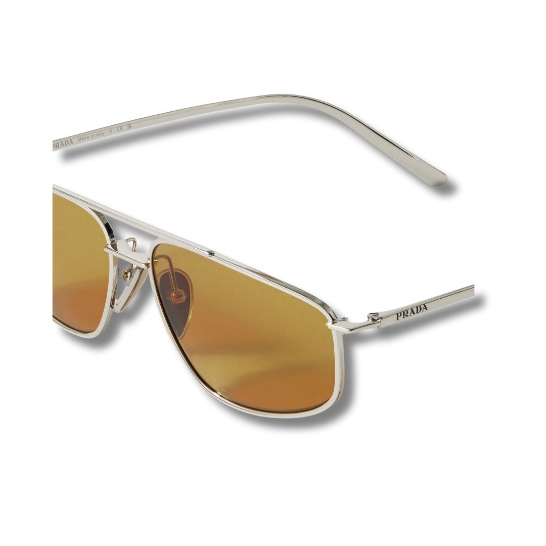 Inspired by vintage aviation eyewear, these sunglasses feature a streamlined metal construction that reflects Prada’s iconic craftsmanship. The silver-tone finish adds a sophisticated edge, making them suitable for both casual and formal looks.