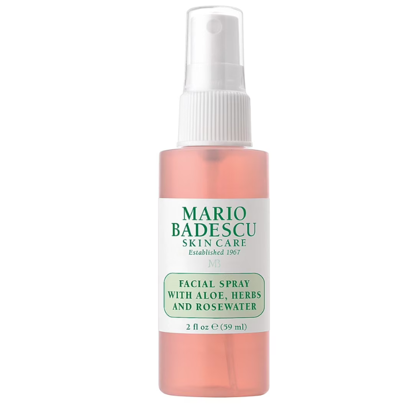 - Mario Badescu Facial Spray with Aloe, Herbs and Rosewater 118 ml . offers multiple benefits: to refresh and re-hydrate skin, to set makeup or to give dry hair a boost. Whether spritzed for a hydrating boost or midday pick-me-up, this cult-favorite face mist helps revive dehydrated skin with a dewy glow anytime, anywhere. A floral infusion of Aloe, Rose, and Gardenia boosts the complexion—leaving skin radiant and re-energized.